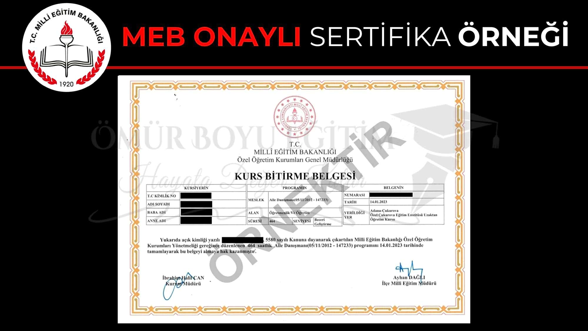 Aile danışmanlığı eğitimi MEB onaylıdır.